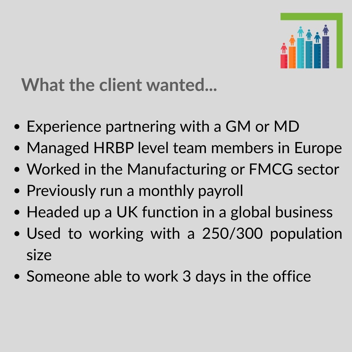 So, what was the client looking for? The brief was for a Head of HR in Surrey, paying up to 90k with specific role requirements and skills. The client knew their business and having had someone in the role previously that hadn’t been right, knew getting the perfect person was crucial.